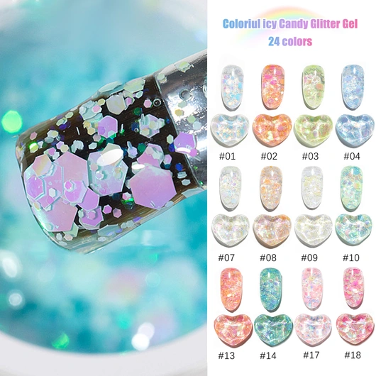 zrkgel 24 couleurs de vernis gel pailleté aux couleurs acidulées