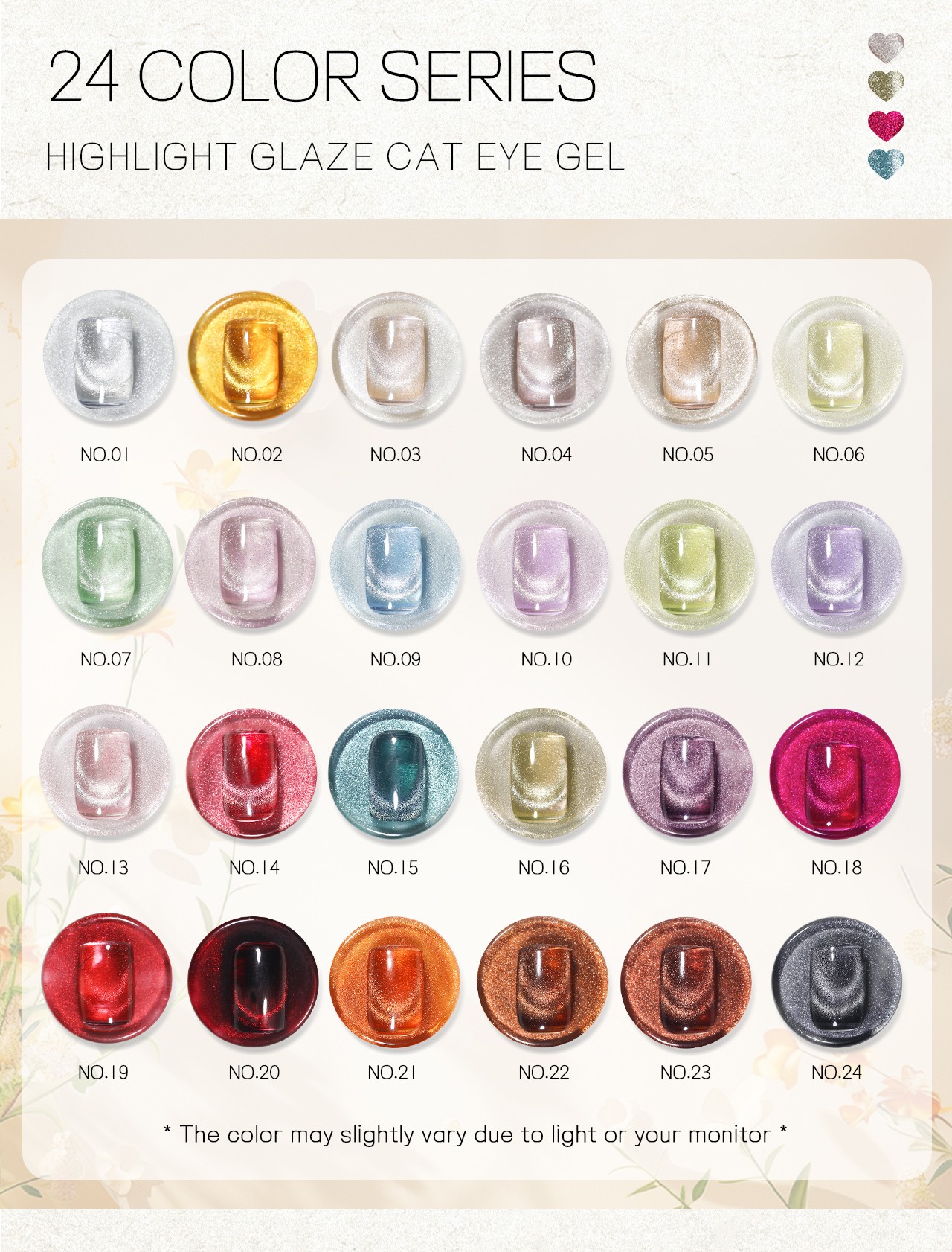 | Product name: | ZRKGEL 24 colors HIGHLIGHT GLAZE cat eye gel polish set | Feature: | Long Lasting/easily soak off/easily brush on |