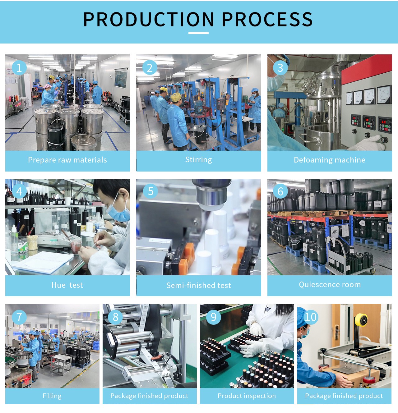 Our factory covers 8000 square meters,40+ automatic production lines. The non-dust workshop, advanced technology, strict production management, and strong production capacity of 300000 bottles per day have made us a rather competitive nail gel supplier around the world.Our hotselling products includes gel polish、base &top coat、kinds of nail extension gel、builder gel、acrylic powder,and other special function gel.