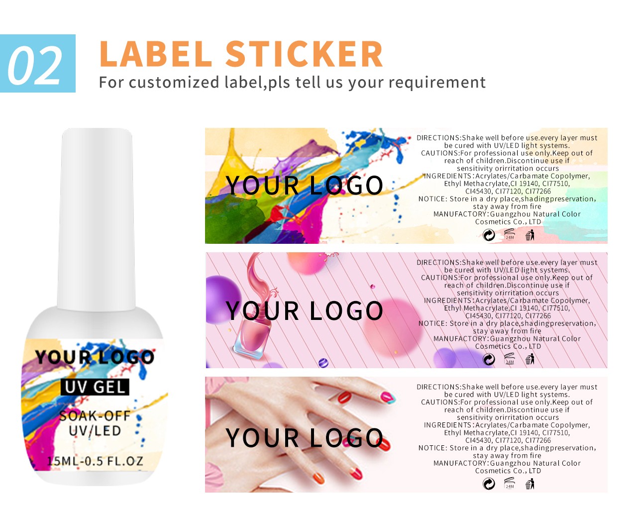 Guangzhou Natural Color Cosmetics Co.,LTD(more than 12-year experience in cosmetic products) is the professional nail supplier,could provide free product pictures/videos and equipped with professional R&D team and imported production lines.